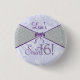 Lila und silberner Glitzer, 16. Geburtstag, Partyknopf. Silberner Glitter mit lila Akzenten und ein hübscher Mittelbogen und und ein lila gemusterter Hintergrund.