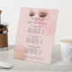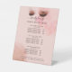 Atemberaubendes und schönes Makeup Künstler Thema Service Liste Podestal Schild. Unser Design zeichnet sich durch eigene, originale geschlossene Augen und Leinen mit Imitaten Glitzer Schatten aus. Die schöne, rosafarbene Makeup Powder-Elemente werden in das Hintergrunddesign aufgenommen, um ein luxuriöses und Glamour-Look zu schaffen. Passen Sie den Firmennamen, die Kontaktinformationen und Ihre Produkte/Dienstleistungen-Auflistung und Preise an. Kunstwerk von Moodthologie.