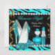 Glitzer Glamour Night Aquamarin Blue Gold Zebra Einladung