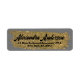 Fügen Sie Ihrer Korrespondenz eine luxuriöse Touch mit diesem individuell anpassbaren Rücksendelabel hinzu. Das Label zeichnet sich durch einen glänzenden goldenen Pinselstrich aus, der Eleganz und Glanz verströmt und sich ideal für einen unvergesslichen Eindruck eignet. Der Name wird in einem anmutigen kursiven Schriftart angezeigt, während sich die Adresse in einer sauberen, modernen Schrift befindet, die einen schönen Kontrast bietet, der die Lesbarkeit erhöht. Dieses Design verbindet Praxisnähe mit gehobener Ästhetik, um sicherzustellen, dass Ihre E-Mails mit einem personalisierten Flair herausragen. Ob für den persönlichen oder geschäftlichen Gebrauch, diese Labels bieten eine raffinierte Art, Ihren einzigartigen Stil auszudrücken.