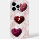 Ihr Monogramm auf einem glänzenden Herz vor einem rosa Marmorhintergrund.