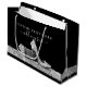 Maßgeschneiderte, großformatige, glänzende Geschenktasche oder luxuriöse Papiertüte mit schwarz und silber hohen Fersen Stiletto-Schuhen und personalisiertem Namen, Anlass, Geburtstag oder Geschäftsmotto.
