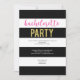 Diese moderne und lustige Einladung zum Junggeselinnen-Abschied bietet einen schwarz-weiß gestreiften Hintergrund mit scharf rosa Cursive Text und Imitat Glitzer Text.