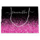 Glitzer in Schwarz und Heiß Rosa Eleganter Name Große Geschenktüte