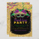 Karneval-Einladungen. Geschaffen mit einem Spaß und einer festlichen mehrfarbigen Maske auf einem glittery Hintergrund mit traditionellen Karnevalausläufern und -perlen.