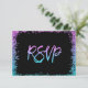 Moderne lila und türkisfarbene Imitate Glitzer RSVP Karten. Ideal für eine Hochzeit, Bat Mitzvah oder Sweet 16 Party. Designs sind flache gedruckte Illustrationen/Grafiken - NICHT AKTUELLER GLITZER.