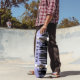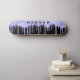 Personalisierte gürtelförmige Skateboard mit lila Imitaten Glitzer tropfen vor einem schwarzen Hintergrund. Sie können Ihren Vornamen in fett formatierten Buchstaben über den Glitzer hinzufügen.