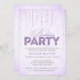 Dieses hübsche Birthday Party-Einladungs-Design von The Gepunktet Olive™ zeichnet sich durch einen hübschen weichen Lavendelhintergrund aus, der ein Bild funkelnd Schmuckstücke und die stylishen Schriften "Birthday Party" mit dem Wort "Party" und einem Lavendel-Glitzer enthält. BITTE BEACHTEN SIE: DIESES DESIGN BIETET NUR EIN DRUCKENDES BILD VON GLITZER; ES GIBT KEINEN PHYSISCHEN GLITZER, DER VERWENDET ODER INKLUSIVE IST; ES GIBT KEINE EMBELLISHIERUNGEN. DAS IST EINE FLACHDRUCKTE EINLADUNG. Klicken Sie auf die Schaltfläche "Anpassen", um zum Entwurfstool zu gelangen, mit dem Sie den Schriftart, die Schriftgröße, die Schriftfarbe, die Textpositionierung und vieles mehr ändern können. Das Gepunktete Olive™ ist Ihre Online-Quelle für trendige, niedliche und coole Designs auf angesagten Visitenkarten, trendige Einladungen & Ankündigungen, moderne und stilvolle Urlaubskarten und einzigartige personalisierte Geschenke. Copyright 2013-Present | Der Gepunktete Olive™ | Alle Rechte vorbehalten