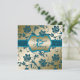 Versenden Sie eine elegante Einladung zu einer Verlobungsfeier mit diesem goldenen und aquamarinen IMITAT Glitzer Blumendesign, das hier auf Basispapier gezeigt wird. Es würde besonders schön auf metallischem Papier glänzen. Wenn Sie passende Artikel für dieses Design benötigen, senden Sie Ihre Anfrage bitte an niteowlstudio@gmail.com.