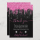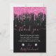 Glitzer mit schwarz-rosa Tropfen Sweet 16 Dankeskarte