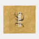 Eleganter Monogramm-Name Fleece Decke mit goldenem Glitzer Hintergrund. Personalisieren Sie Ihre Daten mit Namen und Monogramm.