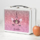 Niedlich Blush Pink und Burgund Imitate Glitzer Ombre Mit Monogramm Sparkle Unicorn Prinzessin Zurück zu Schule Mittagessen Box. Der Name des Monogrammskripts kann auf dieser Lunch Box aktualisiert werden.