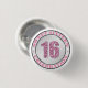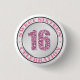 Pink 16 . Geburtstag (16) Meilenstein Geburtstagsknöpfe mit gedruckter Glitzer-Abbildung für die "16" in einem "16 . GEBURTSTAG CELEBRATION" Emblem-Design.