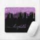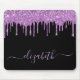 Personalisiertes, elegantes und gürtelschwarzes Mauspad mit lila Imitaten Glitzer Tropfen. Personalisieren Sie mit Ihrem Namen in einem stilvollen, leicht lila trendigen Skript mit Swashes.