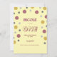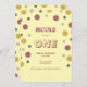 Eine lässige und doch auffällige Geburtstagseinladung mit rosa und goldfarbenem Glitzer und grauen Polka-Punkten mit gelbem Hintergrund. Personalisieren Sie es mit Namen und Alter.
