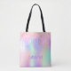 Ein trendiger, regenbogenfarbener Hintergrund mit Einhorn- und Regenbogenpastellfarben in Rosa, lila, Rose Gold, Minzgrün. Dekoriert mit Imitaten Glitzer Tropfen in Rose Gold, Rosa und lila. Personalisieren und fügen Sie einen Namen, geschrieben mit einem mädchenhaften modernen handgeschriebenen Stil Skript. Lila Buchstaben.