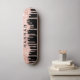 Personalisierte gürtelförmige Skateboard mit rosa Imitat Glitzer tropfen vor einem schwarzen Hintergrund. Sie können Ihren Vornamen in fett formatierten Buchstaben über den Glitzer hinzufügen.