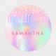 Ein trendiger, regenbogenfarbener Hintergrund mit Einhorn- und Regenbogenpastellfarben in Rosa, lila, Rose Gold, Minzgrün. Dekoriert mit Imitaten Glitzer Tropfen in Rose Gold, Rosa und lila und ein Regenbogen gefärbt Einhorn. Personalisieren und einen Namen hinzufügen. rosa Buchstaben.