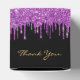 Elegant, klassisch, glamourös und mädchenhaft für eine 21. Geburtstagsfeier (oder jedes Alter). Eine schicke schwarze Hintergrundfarbe. Auf der Vorderseite und auf der Rückseite: Der Text: 21. Geburtstag und Vielen Dank, dass Sie mit einem modernen handgeschriebenen Stil geschrieben haben. Dekoriert mit tiefen lila Imitate Glitzer Tropfen, Farbe Tropflook. Personalisieren und fügen Sie einen Namen und ein Datum hinzu. Golden farbiger Text.