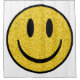 Ein gelber, digitaler Glitzer texturierte lächelndes Gesicht.