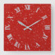 Glitzer-Sterne - silbernes Rot Quadratische Wanduhr
