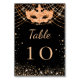 Ein stilvoller schwarzer Hintergrund mit goldenem Glitzer-Staub in Imitaten und Maskerade. Fügen Sie Ihre Nummern eins nach dem anderen hinzu.