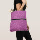 Diese Tasche wird mit einem lustigen Fuchsia Imitate Glitzer Druck und einem schwarzen Streifen gezeigt. Mittlere Größe angezeigt. Hat schwarze Gurte. Passen Sie dieses Objekt an oder kaufen Sie es wie geplant.