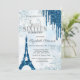 Moderne, schicke und glamouröse Sweet 16 mit blauen Glitzer-Tropfen, Eiffelturm und Schneeflocken.