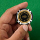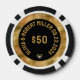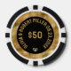 Die Black and Gold Disco Glitzer Spiegel Hochzeitschips sind mit individuellen Namen, Terminen und Dollarbeträgen gestaltet.