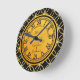 Die 50. Gold Wedding Jubiläumsuhr - mit goldfarbenem und schwarzem Glitzer an den Seiten mit blumenvergoldetem Glitzer und einer runden metallischen Goldform steht für ein einzigartiges, elegantes 50-jähriges Hochzeitsgeschenk. Sie können die Namen des Ehepaares, des Jahres des Jahrestags und des Datums personalisieren!