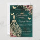Glitzerkleid, Schmetterling Blumen Grün Quinceañer Einladung