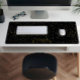 Glitzern aus Luxusschwarz und Gold - Monogramm Schreibtischunterlage