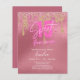 Hübsche Girly Glamour ist das Wesen dieser Imitate rosa und goldene Glitzer-Folie Quinceanera, süße 15, fünfzehnte Mädchen Geburtstagsfeier Einladung. Textvorlagenfelder beiderseits ermöglichen es Ihnen, UAwg, Gift-Registrierung und alle weiteren lieblichen15-Party-Ereignisdetails bei Bedarf einzubinden.
