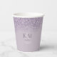 Ein handgeschriebener, signierter Schriftart kombiniert mit geometrischen Rahmen, funkelnd Hintergründen und üppigen Blumen werden in dieser Kollektion verwendet, um Ihnen einen gemütlichen und intimen Set für Ihre Hochzeit zu geben. Der hier gezeigte Hochzeitspapier-Becher mit seinem lila Rahmen von Glitzern ist ein eleganter Hintergrund, um Ihre eigenen Menüinitialen, das Hochzeitstag und Dankeschön-Nachricht hinzuzufügen. Suchen Sie ID889, um alle Produkte in diesem Hochzeitsfest Set zu sehen.