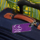 lila Glitzer Gepäckträger mit Lederband: großes Skript-Monogramm und Name