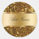 Glitzy Monogramm Aufkleber mit dem stilvollen, simulierten Goldmuster-Glitzer, das auf dem Etikett und dem goldfarbenen Monogramm-Emblem gedruckt ist und mit jedem beliebigen Namen, Initialen oder Nachrichten personalisiert werden kann. Beste Monogramm-Etiketten für Dankeschön, Party, Geschenketiketten oder Namensschilder.