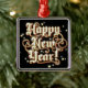 Square Premium-Ornament mit einem Bild der Urlaubsstimmung "Happy New Year!" in glitzernden Buchstaben inmitten glänzender goldener Sterne auf schwarz. Sehen Sie sich die gesamte Neujahrskollektion unter der Rubrik ZUHAUSE im Bereich HOLIDAYS an.