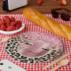 Glitzy Pink Glitzer Gold Eyelashes Leopard Pappteller