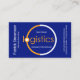 Auf der Rückseite, in einem blauen Cover, ist das goldene globale Logo oben, gefolgt von dem Firmennamen, seinen Kontaktdaten und einem Slogan, um Ihre Dienste zu veröffentlichen.