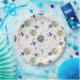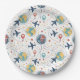 Lebendige nahtlose Muster-Papierplatte mit Flugzeugen, Globussen, Flugrouten, Sternen und reisebezogenen Symbolen in einem spielerischen Luftfahrtstil. Ideal für Reisende, Luftfahrt-Enthusiasten, Vielflieger und alle, die globale Abenteuer-Ästhetik lieben.