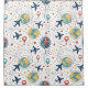 Lebendiger nahtloser Muster-Duschvorhang mit Flugzeugen, Globus, Flugrouten, Sternen und reisebezogenen Symbolen in einem spielerischen Aviatik-Stil. Ideal für Reisende, Aviatik-Enthusiasten, Vielflieger und alle, die globale Abenteuer-Ästhetik lieben.