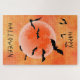 Moderne orangefarbene Kugel und schwarze Fledermäuse. Der Hintergrund ist orange