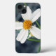 Das Bild auf diesem iPhone 13 Case ist ein Originalfoto von MaeFlowers einer Wildblume. Es handelt sich um eine winzige weiße Blume mit fünf Blütenblättern und einem gelb-orangefarbenen Pompom in der Mitte. Das Foto ist eine Nahe, mit der Blume selbst in scharfem Fokus, dem grünen Stamm der Blume und den Blätter in weichem Fokus, und der Erholung des Hintergrunds in sanften Farbtönen dunkelbläulichen Grau. Die Blume ist ein Unkraut, der den Rasen mit Weiß füllt.
