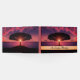 Phantastisches Foto eines einsamen Baumes auf dem Wasser mit lila Himmel und Sonne in der Mitte des Baumes. Sieht so aus, als hätte der Baum Set der Welt mit majestätischen Farben von plumb und violett. Geben Sie den Bereich für Name und Datum ein. Auf dem Deckblatt können das Geburtsjahr und das Untergangsjahr dem Himmel hinzugefügt werden. In der Wirbelsäule Name verstorben und Datum der Dienstleistungen.