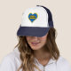 Trucker hat with a heart in the colors of the flag of Ukraine, and text saying "Glory to Ukraine" in Ukrainian