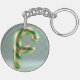 Glossy Green Gold Glitter Striped Letter F Schlüsselanhänger