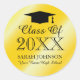 Glossy Imitate Gold Abschluss Aufkleber und Siegel. Aufkleber für Abschluss mit Graduiertenhut / -kappe. Stilvolle Rundticker mit individualisierbarem Jahr 2020 etc. Niedliches Symbol mit dem Namen des Abschlusses plus Datum. Personalisiert danke Ihnen Aufkleber, Gefallen-Etikett, Umschlag-Dichtungen / Siegel. Elegante Skripttypografie. Chic glänzend gelb goldfarbenes Design mit extravaganter Vorlage. Anpassbare Hintergrundfarbe. Geeignet für High School, Uni, Uni etc. Auch gut für Wiedersehen-Party. Fügen Sie Ihren eigenen Namen, Monogramm, Datum usw. hinzu.