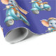 Glossy Wrapping Paper Blue Elephant Scooter Geschenkpapier