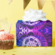 Weiße Mandala Muster auf blauem Hintergrund. Wohngestaltung .Blau, lila Hintergrund , weißes Mandala zeichnend - abstrakt edelweiss, Blumenmodell.