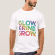 Dieses T-Shirt Design motiviert mit einem dynamischen, vielfarbigen Schema das persönliche Wachstum. "Glow", "Grind" und "Grow" werden in unterschiedlichen Farben dargestellt, die jeweils eine Etappe der Reise reflektieren. "Glühen" könnte ein warmes Gelb sein, das das innere Licht und Potenzial symbolisiert. "Grind" könnte ein entschlossenes Rot sein, das harte Arbeit und Hingabe repräsentiert. Schließlich könnte "Grow" in einem hoffnungsvollen Grün leuchten, was Fortschritt und Errungenschaften bedeuten würde. Dieses Design ist eine großartige Möglichkeit, Ihr Engagement für Selbstverbesserung und das Erreichen Ihres vollen Potenzials zu zeigen.